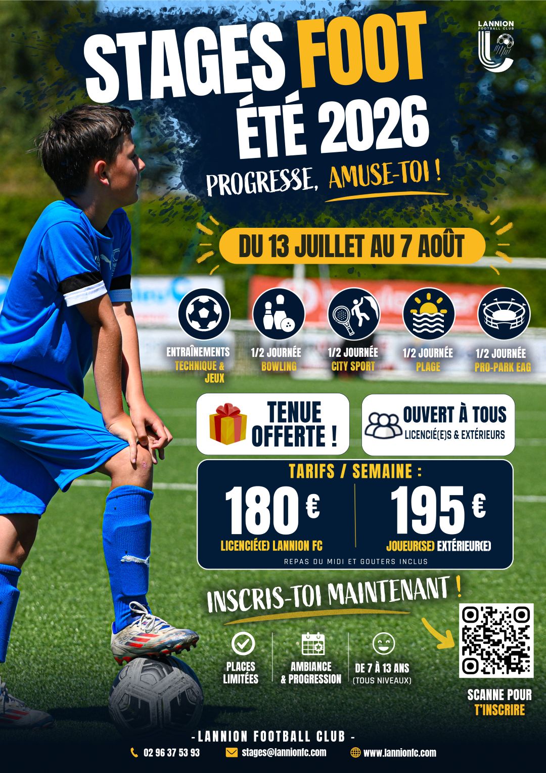 Par téléphone au 02 96 37 53 93* ou par mail à stages@lannionfc.com